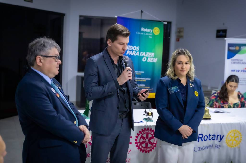 Na oportunidade, foi realizada a posse do novo companheiro Maurício Munaretto, gerente da agência Sicredi Vanguarda em Cascavel (PR), que passa a integrar o quadro de associados do Rotary Club de Cascavel Paz, fortalecendo ainda mais a representatividade e o engajamento da instituição.