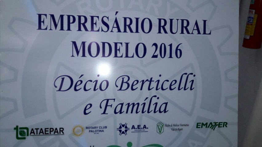Vários nomes foram indicados para este concurso e uma comissão especialmente constituída para analisar o perfil de cada produtor escolheu os destaques de 2016. Na categoria Agricultor Familiar Modelo foi homenageado o Sr. Graciano Bordignon  e o Sr Décio Berticelli o Empresário Rural Modelo.