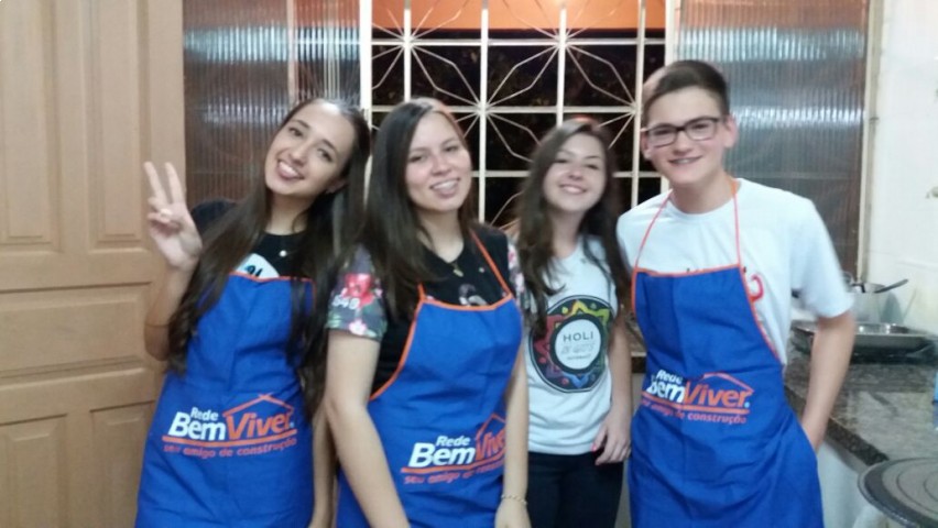O evento contou com a participação de mais de 60 pessoas e disponibilizava um cardápio de dois tipos de macarrão: molho bolonhesa e molho branco com bacon, além de galeto e saladas.