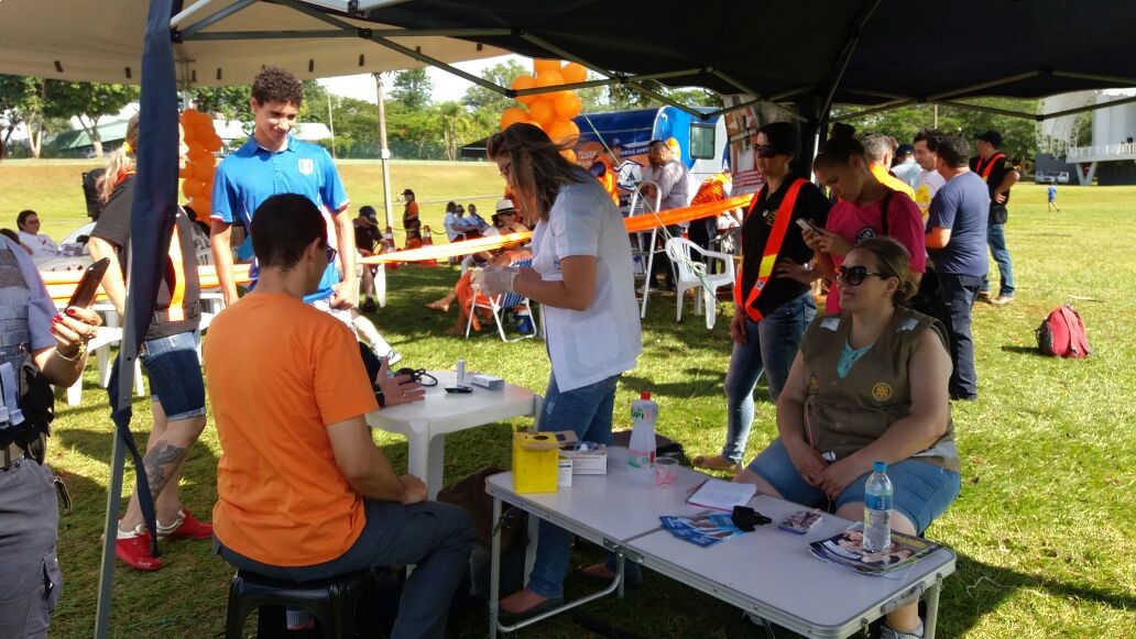 Neste domingo 26 de novembro, o Rotary Club de Foz do Iguaçu Grande Lago participou com seu programa permanente do Dia da Saúde no evento da campanha 16 Dias de Ativismo Mundial pelo Fim da Violência contra a Mulher, que ocorreu no Gramadão da Vila A. Nossa enfermeira realizou leitura de glicose e aferiu a pressão dos participantes do evento.